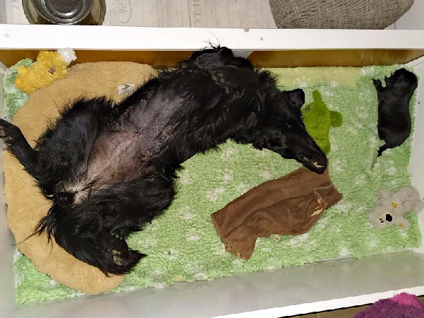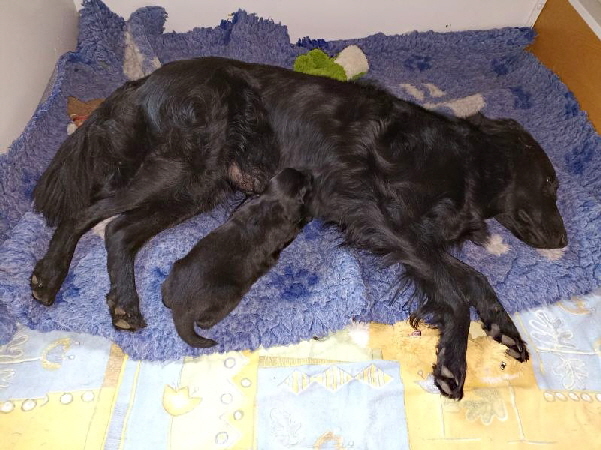 17.11.2021: So hatten wir uns das nicht vorgestellt. Waren wir doch voller Vorfreude, vielleicht ein wenig euphorisch. Bei der Ultraschalluntersuchung war die Rede von ‘ ... nicht wenige ...’ gewesen. Alles war gut, Dana zeigte sich gesund und wohlauf. Schließlich begannen die Wehen, aber irgendwie ging es nicht weiter, so dass wir den Tierarzt aufsuchten. Beim erneuten Ultraschall zeigten sich nur wenige Welpen und kaum Herztöne. Beim sofortigen Kaiserschnitt wurden nur 2 Welpen entdeckt, ein kleiner Rüde und eine tote Hündin. Nachdem wir uns gefangen hatten, konnten wir uns über Danas guten Zustand und den Kleinen freuen. Schließlich konnten wir mit den Beiden wieder nach Hause fahren.