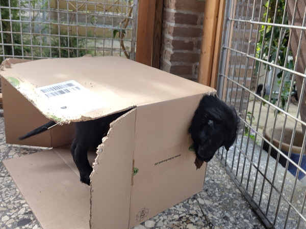 Wir erhalten schöne Berichte und Fotos und Filmchen. Alles scheint gut zu klappen. Naja, noch etwas kurze Nächte für die neuen Familien, aber das gibt sich. Die Kleinen staunen über die neue Umgebung, sehen andere Hunde, Hühner, Gänse und Katzen.