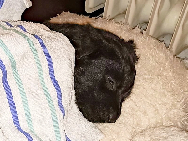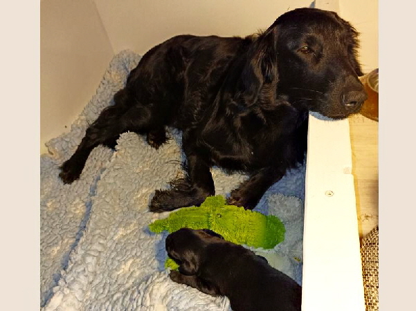 17.11.2021: So hatten wir uns das nicht vorgestellt. Waren wir doch voller Vorfreude, vielleicht ein wenig euphorisch. Bei der Ultraschalluntersuchung war die Rede von ‘ ... nicht wenige ...’ gewesen. Alles war gut, Dana zeigte sich gesund und wohlauf. Schließlich begannen die Wehen, aber irgendwie ging es nicht weiter, so dass wir den Tierarzt aufsuchten. Beim erneuten Ultraschall zeigten sich nur wenige Welpen und kaum Herztöne. Beim sofortigen Kaiserschnitt wurden nur 2 Welpen entdeckt, ein kleiner Rüde und eine tote Hündin. Nachdem wir uns gefangen hatten, konnten wir uns über Danas guten Zustand und den Kleinen freuen. Schließlich konnten wir mit den Beiden wieder nach Hause fahren.