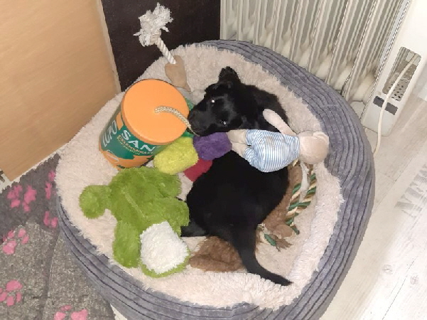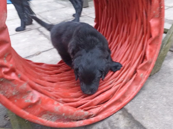 Dana ist wohlauf. Sie nutzt weiterhin die Pausen und hält sich auch gerne bei den anderen Großen auf. Da sie noch nicht mit den Anderen auf den Spaziergang darf, nutzt sie die Zeit und sucht und holt im Garten einige Dummies. Dabei hat sie richtig Spaß.